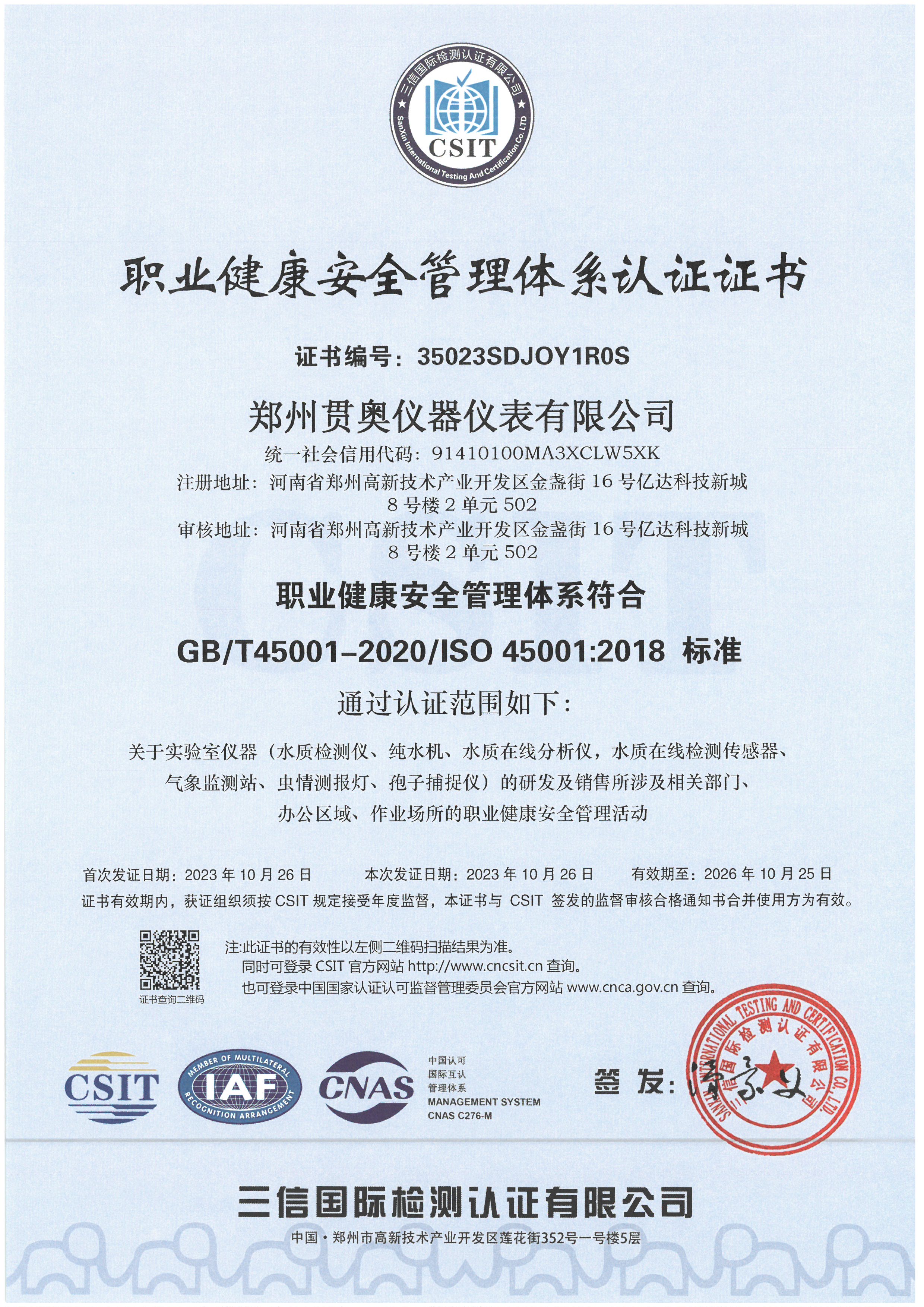 貫奧儀器位于鄭州高新技術(shù)產(chǎn)業(yè)開發(fā)區(qū),是高新技術(shù)企業(yè)、行業(yè)AAA級(jí)信用企業(yè),已通過(guò)GB/T19001:2016質(zhì)量管理體系認(rèn)證、GB/T24001:2016環(huán)境管理體系認(rèn)證和GB/T45001:2020職業(yè)健康安全管理體系認(rèn)證,擁有多項(xiàng)證書,產(chǎn)品已通過(guò)河南省電子信息產(chǎn)品質(zhì)量監(jiān)督檢驗(yàn)院檢測(cè),并出具了相關(guān)檢驗(yàn)報(bào)告,我們以雄厚的研發(fā)實(shí)力、過(guò)硬的產(chǎn)品質(zhì)量、完善的售后服務(wù)為客戶提供分析檢測(cè)技術(shù)解決方案,擁有過(guò)硬的分析儀器生產(chǎn)技術(shù)和整體的水質(zhì)監(jiān)測(cè)解決方案。