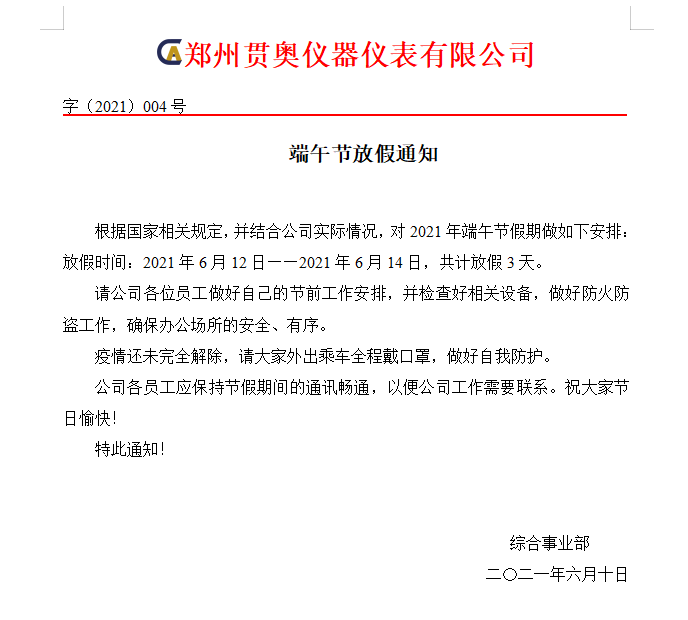 根據(jù)國家相關(guān)規(guī)定,并結(jié)合公司實(shí)際情況,現(xiàn)對(duì)2021年端午節(jié)假期做出以下安排: