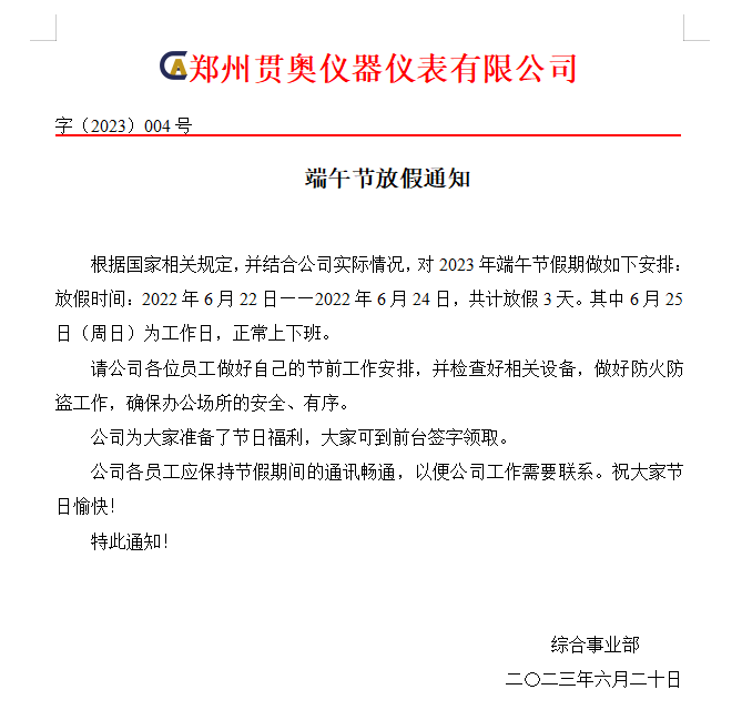 貫奧儀器2023年端午節(jié)放假通知