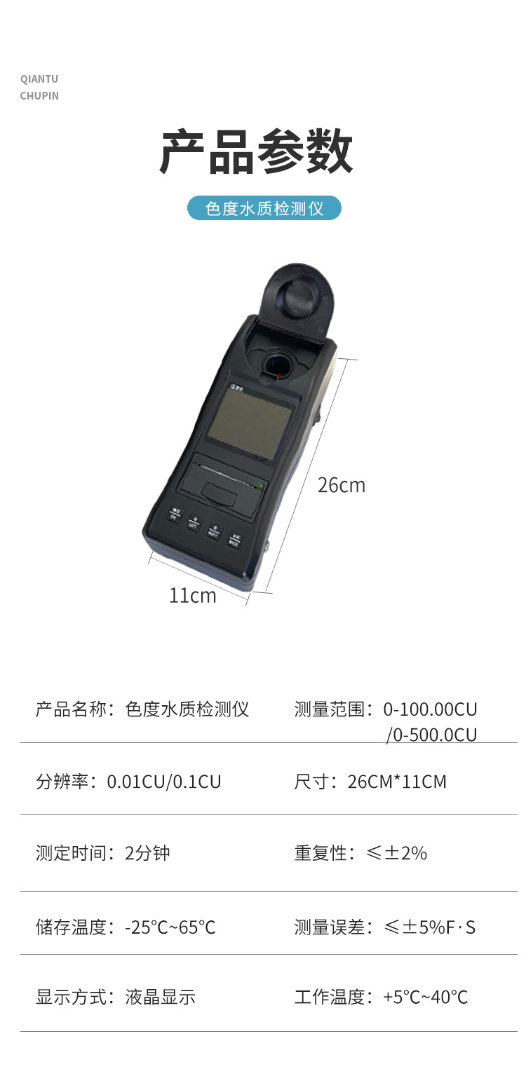 貫奧色度檢測儀可快速準(zhǔn)確測定地表水、地下水、城市污水及工業(yè)廢水中色度指標(biāo),濃度直讀;可廣泛用于水廠、食品、化工、冶金、環(huán)保及制藥行業(yè)等部門。儀器是由單個的固定波長固定用途的分光光度計糅合而成的,采用分光光度法原理對各參數(shù)進行測量,在儀器中建立不同參數(shù)的濃度顯色程度與吸光度的線性曲線,儀器通過對顏色的辨別,得出被測水樣的濃度。本儀器采用全中文菜單,操作簡易易懂,使用方便快速測量準(zhǔn)確度高。