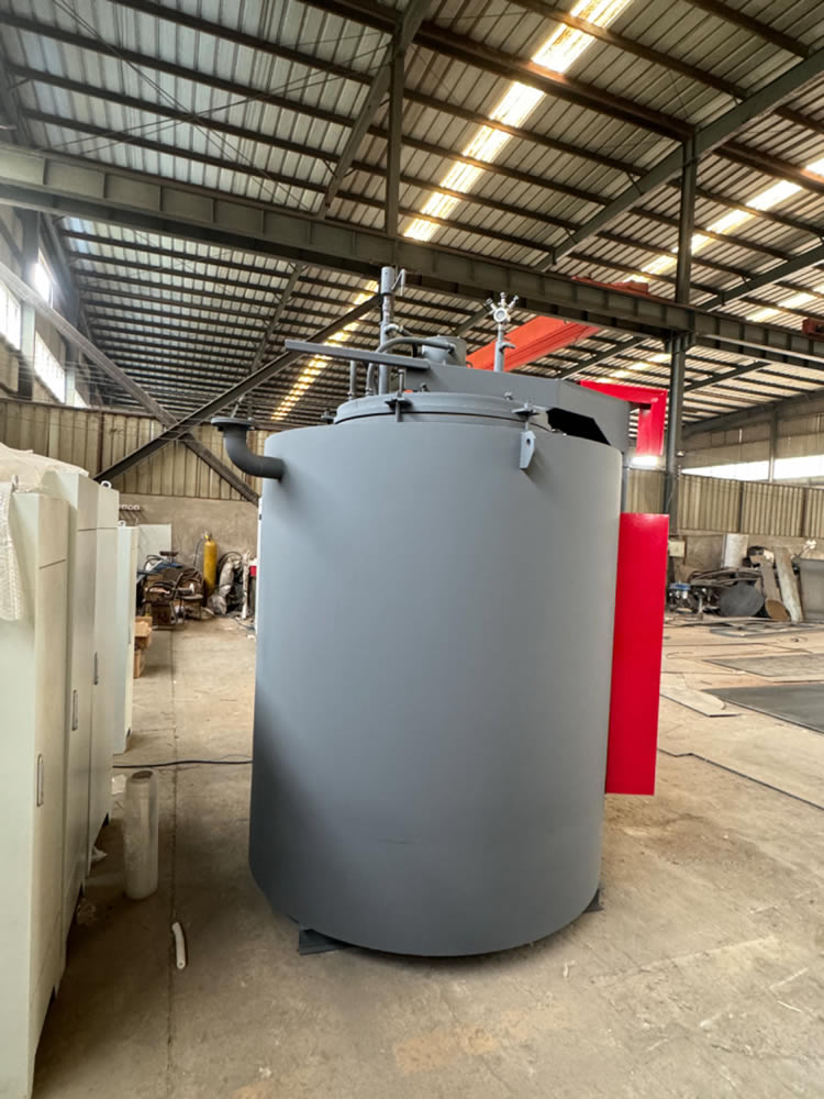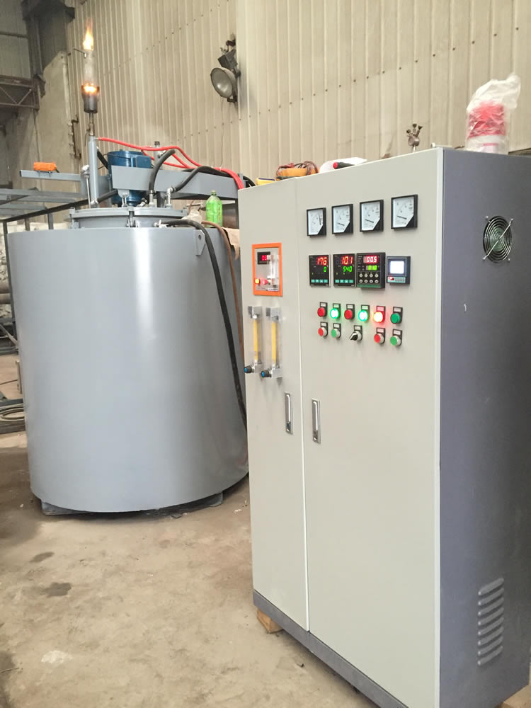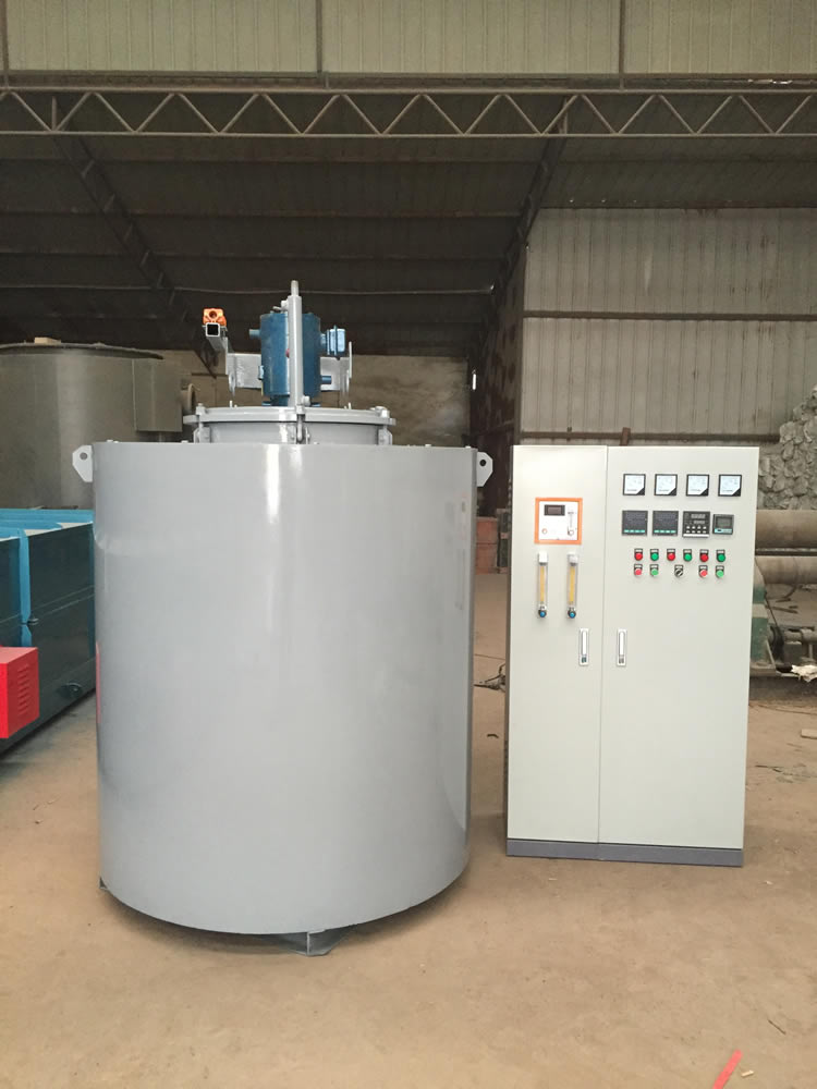 RN系列井式氣體氮化爐是由鋼板做成筒狀外殼,里面是由定形的標(biāo)準(zhǔn)耐火磚砌成的加熱工作室,在加熱室和外殼之間填滿了保溫材料(新型節(jié)能見后面簡介)。加熱室中有一不銹鋼焊接的密封爐罐,爐罐上部裝真空橡膠密封圈,下部為水冷套,爐蓋頂部裝有均熱風(fēng)機,保證了爐內(nèi)氣氛的均勻。
