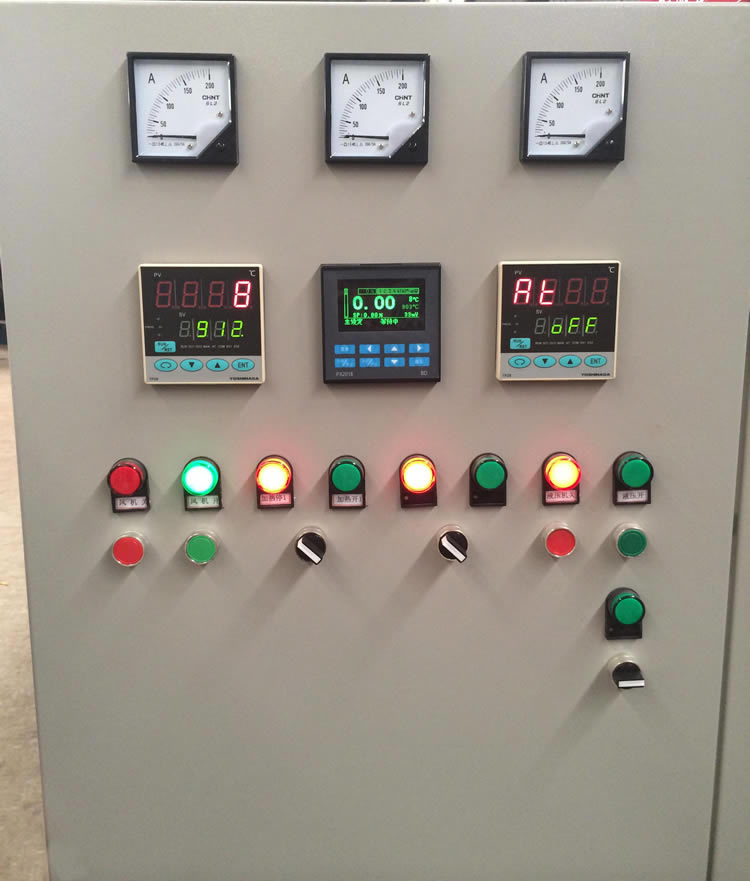 1、控溫儀表采用廈門宇電AI518AP-G-L1智能程序控制儀表,精度0.3級(jí),控溫偏可達(dá)±2℃。人機(jī)界面采用深圳W EINVIEW威綸7吋觸摸屏,通過(guò)通信協(xié)議與智能儀表相連,把儀表操作菜單在觸摸屏**展開,這樣操作更真觀,更方便,在不更改儀表參數(shù)時(shí), 觸摸屏顯示電爐各區(qū)的工作狀態(tài)(用戶可以有選擇性的采用)。